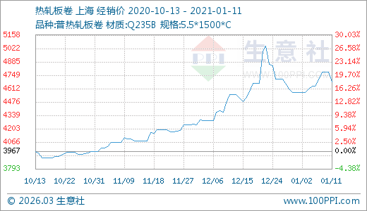01月11日熱軋板卷4682.50元/噸 60天上漲14.77%