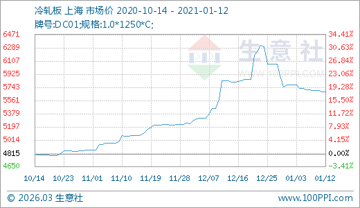 01月12日冷軋板5685.00元/噸 60天上漲11.91%