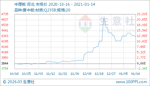 01月14日中厚板4326.00元/噸 60天上漲11.55%