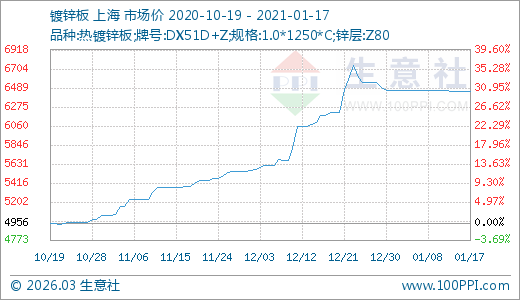 01月17日鍍鋅板6448.00元/噸 60天上漲19.81%