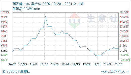 01月18日苯乙烯6700.00元/噸 20天上漲10.44%
