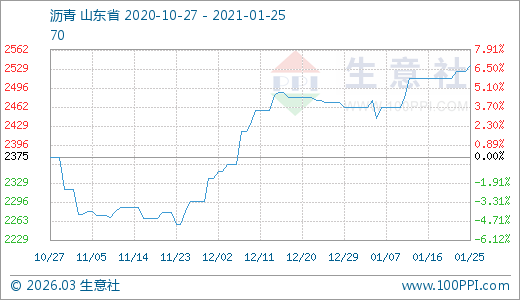 01月25日瀝青2535.00元/噸 60天上漲10.34%