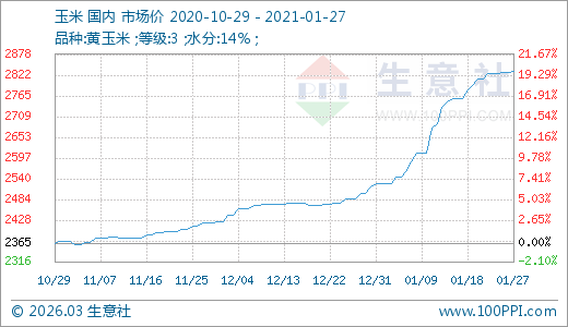 01月27日玉米2831.43元/噸 20天上漲9.44%
