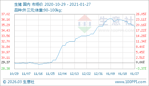 01月27日生豬35.02元/公斤 60天上漲17.60%