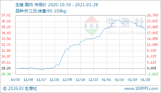 01月28日生豬35.02元/公斤 60天上漲17.60%