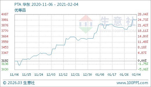 02月04日PTA價格3995.00元/噸 5天上漲3.59%