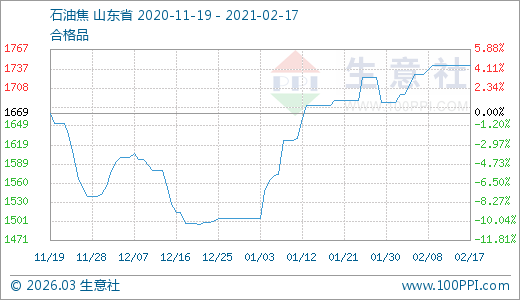 02月17日石油焦1742.50元/噸 60天上漲16.36%