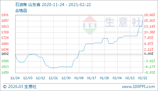 02月22日石油焦1865.00元/噸 5天上漲7.03%
