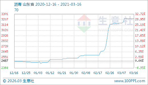 瀝青03月16日最新價格3223.33元/噸,最近20天上漲11.63%,30天上漲24.45%,60天上漲28.29%。