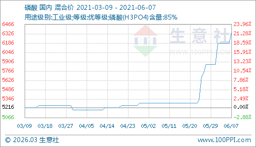 06月07日磷酸6350.00元/噸 10天上漲8.24%