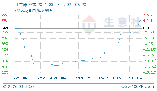 06月23日丁二烯8827.78元/噸 5天上漲3.46%