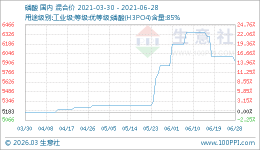 06月28日磷酸5933.33元/噸 60天上漲12.30%