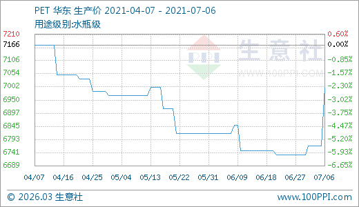 PET 07月06日最新價格7000.00元/噸,最近5天上漲3.45%。