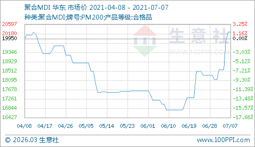 07月07日MDI價格20250.00元/噸 10天上漲10.50%