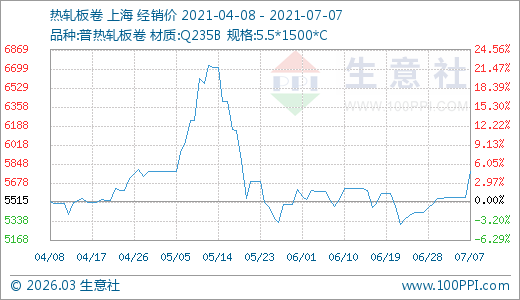07月07日熱軋板卷5778.00元/噸 5天上漲4.11%