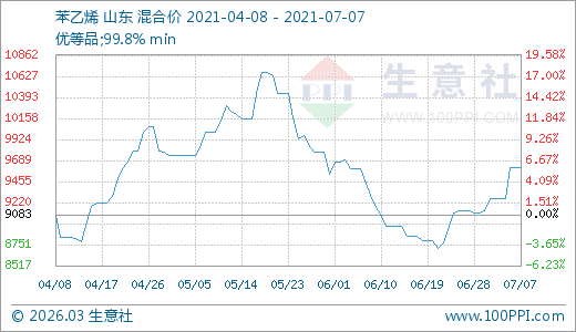07月07日苯乙烯9612.50元/噸 5天上漲3.78%