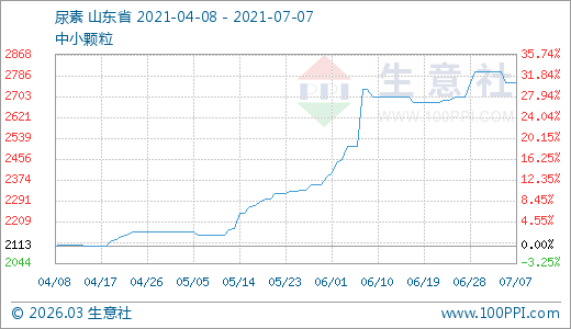 07月07日尿素2760.00元/噸 60天上漲27.98%
