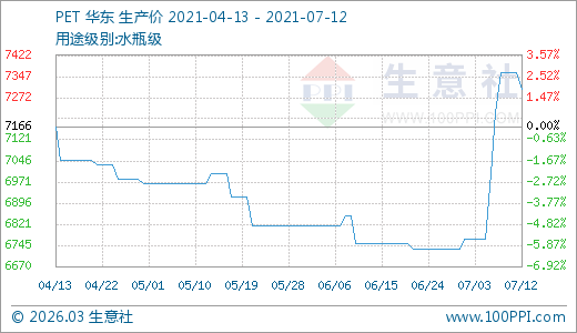 PET 07月12日最新價格7300.00元/噸,最近10天上漲7.88%。