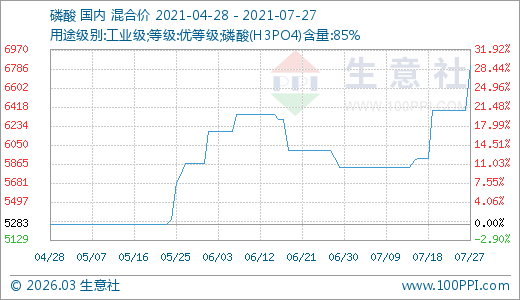 磷酸07月27日最新價格6816.67元/噸,最近5天上漲6.79%,10天上漲15.21%,15天上漲16.86%。