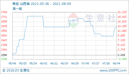 08月04日焦炭2592.00元/噸 5天上漲3.85%
