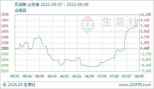 08月05日石油焦2500.50元/噸 10天上漲5.14%