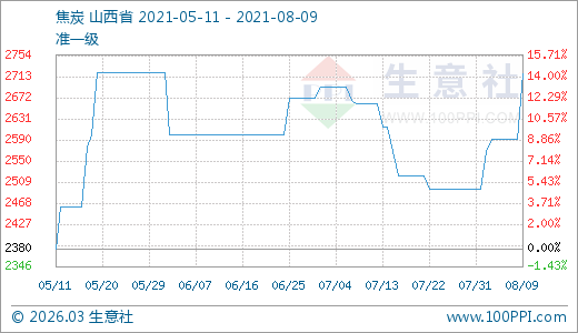08月09日焦炭2718.00元/噸 5天上漲4.86%