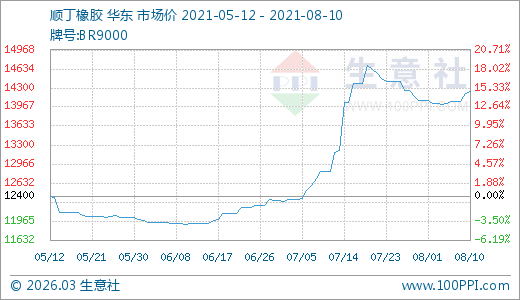 08月10日順丁橡膠14240.00元/噸 30天上漲10.99%