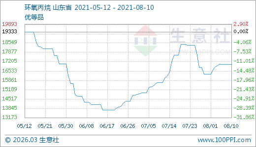 08月10日環(huán)氧丙烷17000.00元/噸 60天上漲20.57%