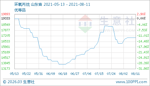08月11日環(huán)氧丙烷17000.00元/噸 60天上漲20.57%