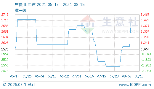 08月15日焦炭2718.00元/噸 15天上漲8.89%