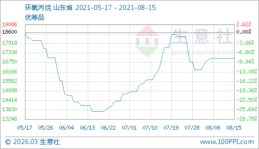 環(huán)氧丙烷08月15日最新價格17025.00元/噸,最近60天上漲23.97%。
