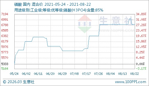 08月22日磷酸6816.67元/噸 60天上漲13.61%