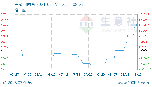 08月25日焦炭3198.00元/噸 5天上漲8.11%