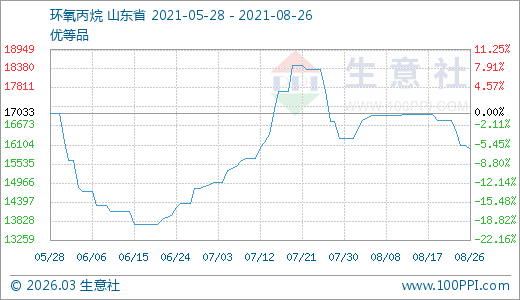 08月26日環(huán)氧丙烷15966.67元/噸 60天上漲11.14%