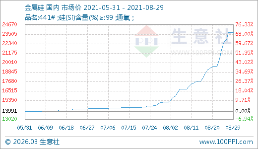 08月29日金屬硅23700.00元/噸 5天上漲9.89%