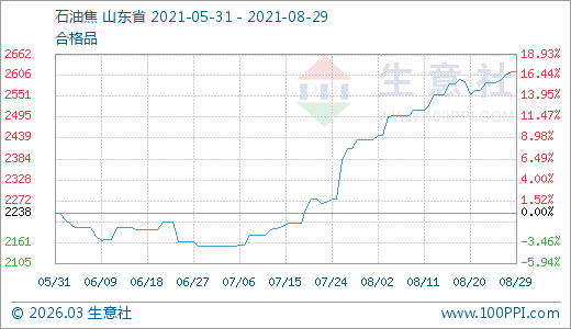 石油焦08月29日最新價格2616.00元/噸,最近60天上漲21.56%。