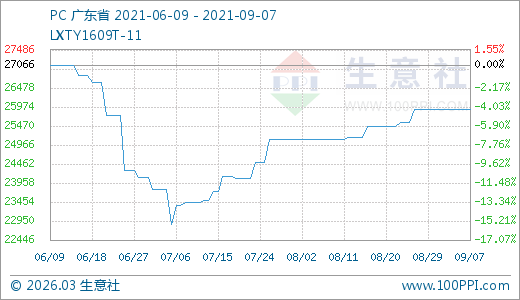 09月07日PC價(jià)格25900.00元/噸 60天上漲10.45%