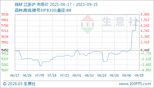 09月15日線材5836.00元/噸 10天上漲7.16%