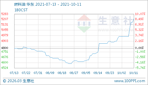 10月11日燃料油5220.00元/噸 5天上漲5.03%