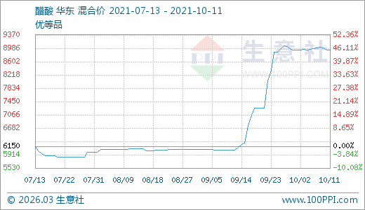 10月11日醋酸8940.00元/噸 20天上漲23.31%
