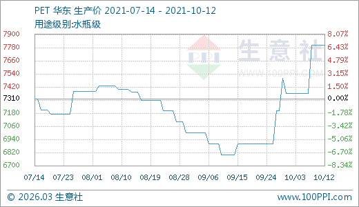 10月12日PET價(jià)格7800.00元/噸 5天上漲5.98%