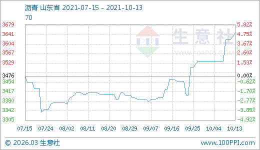 10月13日瀝青3648.00元/噸 5天上漲3.17%