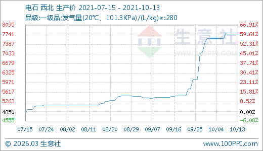 10月13日電石7800.00元/噸 15天上漲9.86%