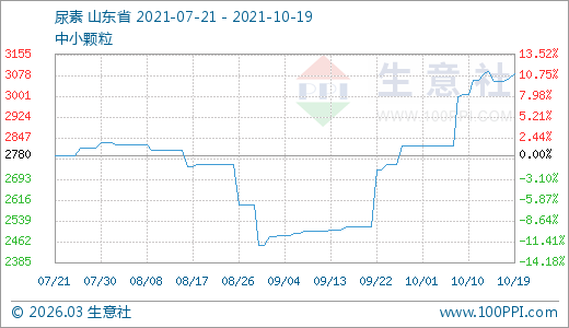 10月19日尿素3085.00元/噸 15天上漲9.53%