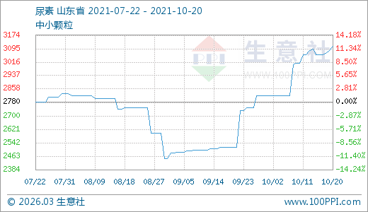 10月20日尿素3108.33元/噸 15天上漲10.35%
