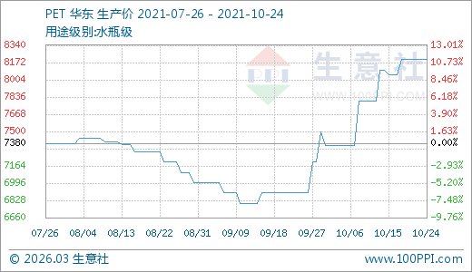 10月24日PET價格8200.00元/噸 20天上漲11.41%
