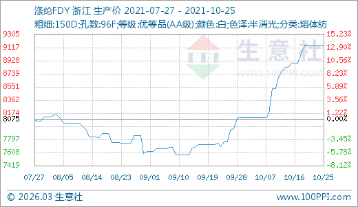 10月25日滌綸FDY價(jià)格9148.57元/噸 15天上漲7.31%