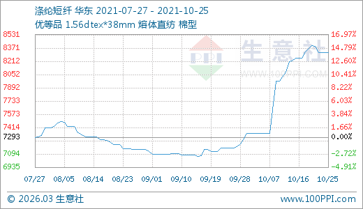 10月25日滌綸短纖8315.00元/噸 20天上漲13.23%