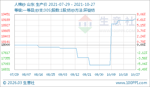 10月27日人棉紗19233.33元/噸 20天上漲12.81%