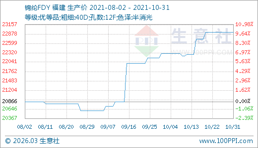 10月31日錦綸FDY價格22925.00元/噸 60天上漲11.29%